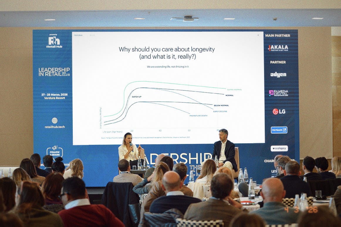 I was recently in Sicily, speaking at a summit organized by the Retail Hub of Massimo Volpe - a room full of serious retail founders, department store operators, people who think about physical space professionally. Longevity didn’t squarely fit their world. And then after I spoke, the hallway conversations started. People running major flagship stores quietly asking: is this a retail category now?